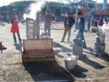 まずはかぴらオリジナルのかまどでお米を蒸かします。