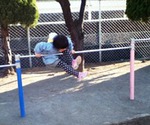 今度は後ろに回して「後ろ跳び」