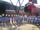 音楽朝礼の後、11月1日にワカバウォークでの『鼓笛演奏会』を控えた年長さんの最後の練習を兼ねて、幼稚園のお友だちの前で披露しました。