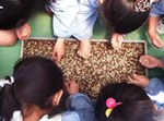 みんなで「1・2・3...」と数えながら10回ずつつきました。