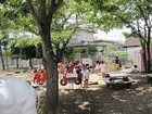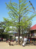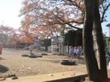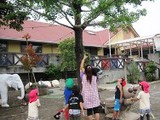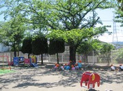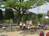 かぴら幼稚園では、砂場などの日よけに、自然の木陰を使い、正常な視覚を養うようにしています。