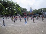 まずはラジオ体操をして準備運動。