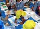 園庭で、色水遊びをしました。