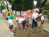 めだか組が気持ちよさそうに砂場で遊んでいました。