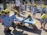 元気いっぱい『よーいドン!』で走ったり、走るのがまだ難しいお友だちは、先生に引っ張ってもらい、車に乗って『よーいドン』しました。