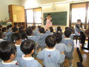 午前中その日によって、色々な活動をします。専門講師による特別指導の日もあります。お絵描き、工作、体育、音楽、英語、等、 |